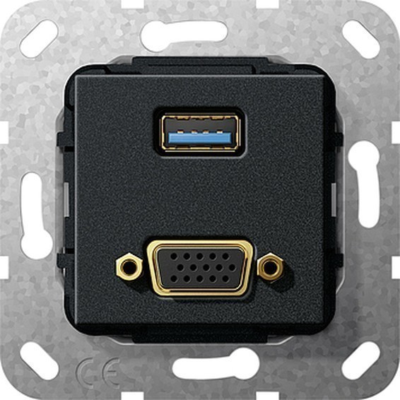 Розетка VGA+USB Gira SYSTEM 55, черный, 568910